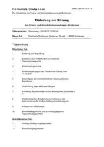 Am 14.03.2019 findet um 19:30 Uhr im Dörphus der Gemeinde Großensee, Hamburger Str. 11, eine öffentliche Sitzung des Finanz- und Grundstücksausschusses statt.
